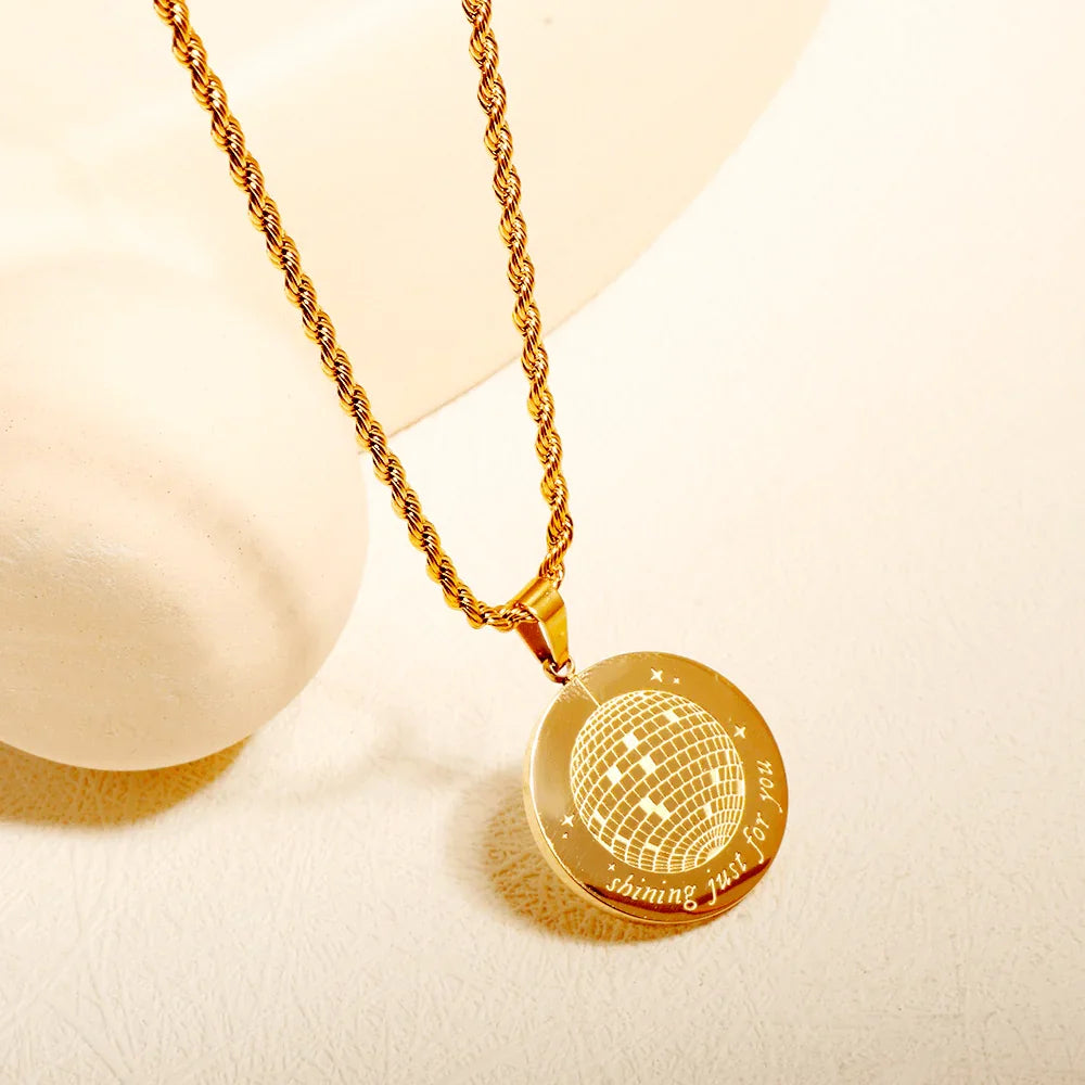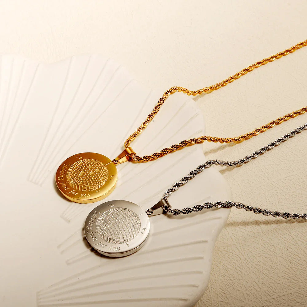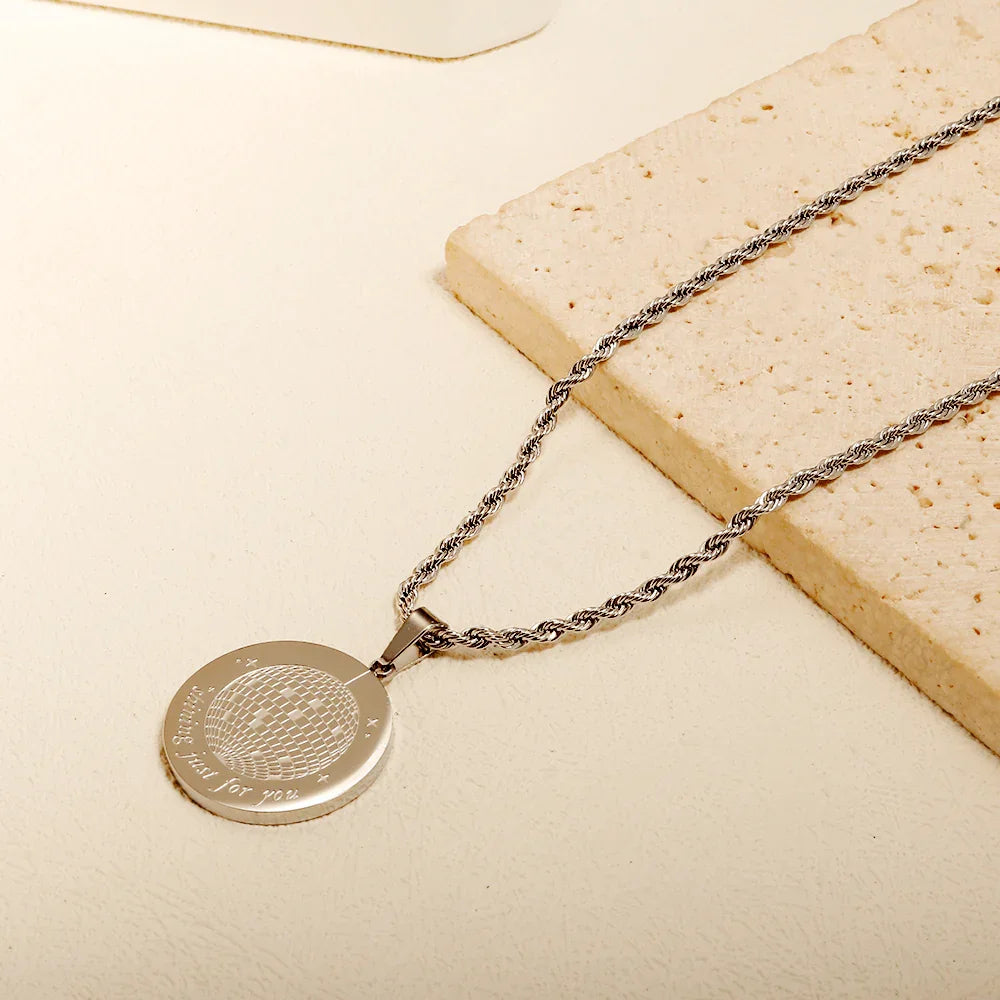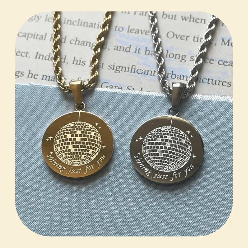 💫 Com 50CM de estilo e feito com os melhores materiais de aço inoxidável e titânio, o Colar Mirrorball brilha como a luz da lua! 🌙✨