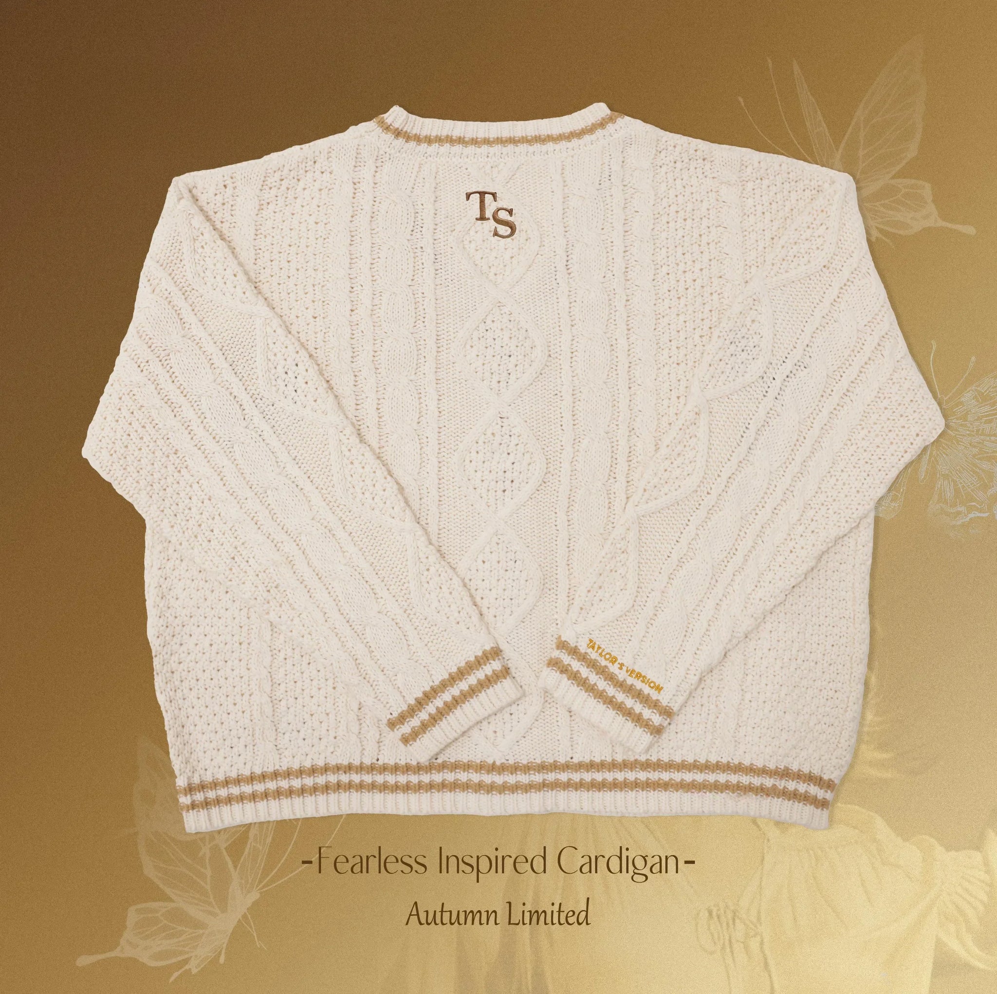 Cada fio deste cardigan carrega a coragem, a doçura e o brilho que definem o espírito do álbum.