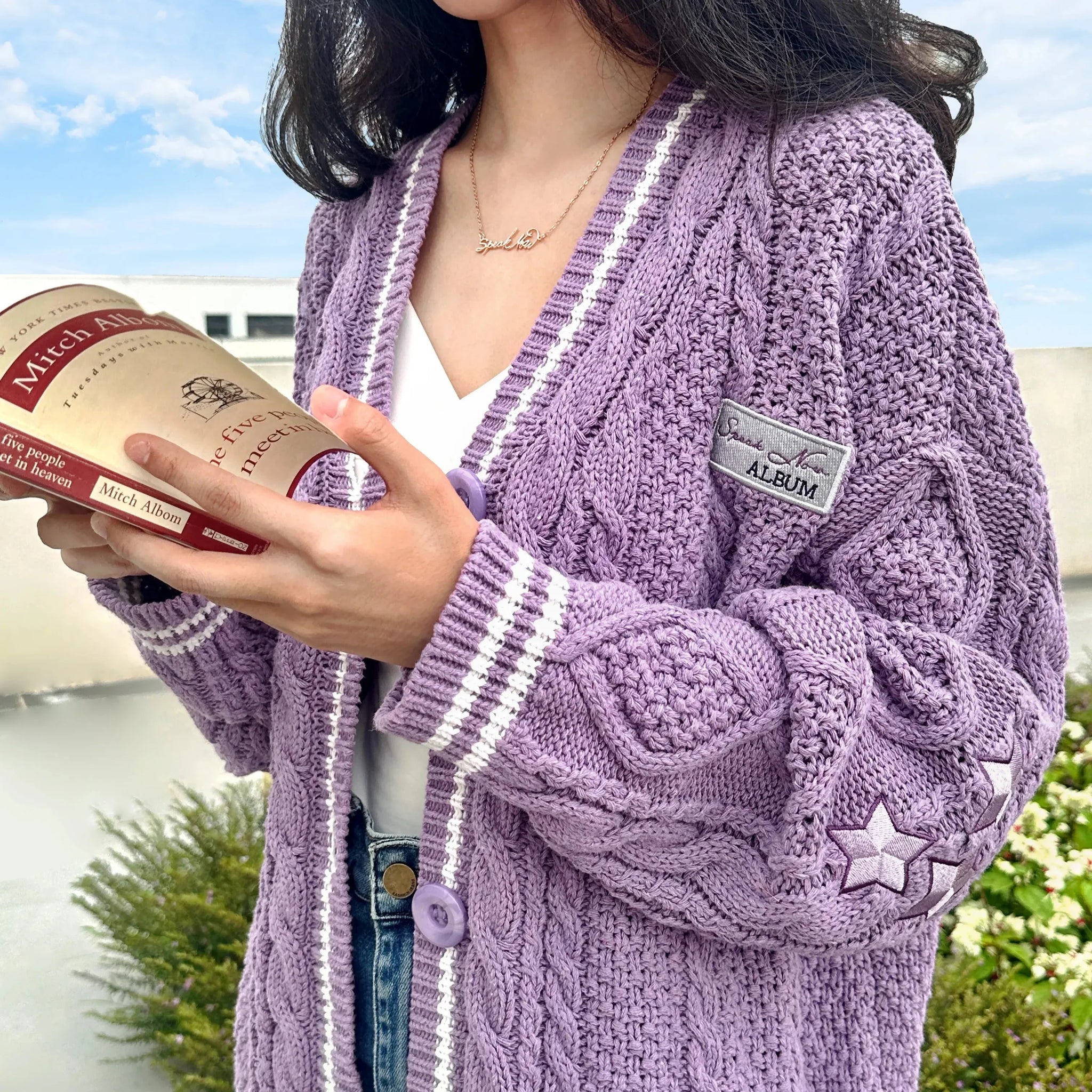 O Cardigã Speak Now se inspira em sua assinatura roxa Speak Now e detalhes intricados. O Cardigã Speak Now vem com botões roxos em degradê que adicionam um toque encantador para completar o visual.